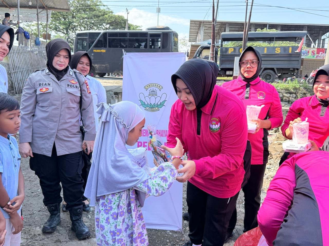Ketua Bhayangkari Cabang Pidie, Ny. Ruri Jaka, menyampaikan bahwa kegiatan trauma healing ini diharapkan dapat membantu anak-anak pulih secara emosional dan kembali merasakan rasa aman serta kebahagiaan setelah mengalami bencana banjir.