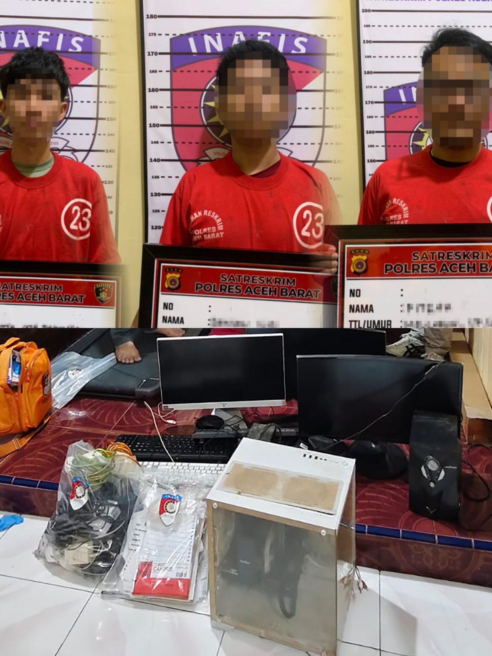“Penangkapan besar di Aceh Barat ini bermula dari laporan masyarakat yang mencurigai aktivitas tidak wajar di salah satu rumah warga, sehingga dilakukan penyelidikan. Berdasarkan hasil penyelidikan tersebut, petugas berhasil mengamankan ketiga pelaku saat sedang melakukan transaksi judi online melalui komputer,” ujarnya.