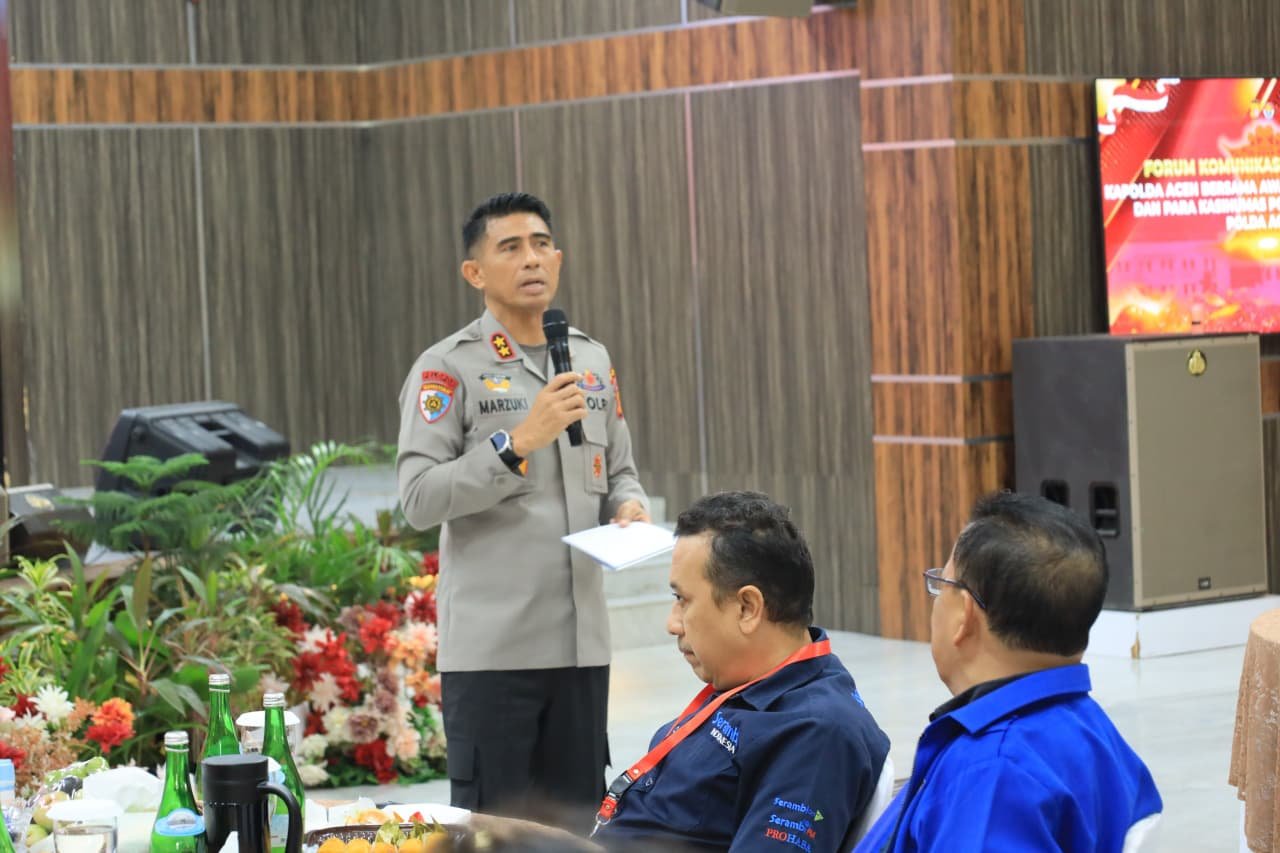 Ajakan tersebut disampaikan Marzuki dalam Forum Komunikasi Kapolda Aceh dengan Awak Media, Influencer, dan Kasi Humas Jajaran yang digelar di Aula Presisi Polda Aceh, Kamis, 2 Oktober 2025.