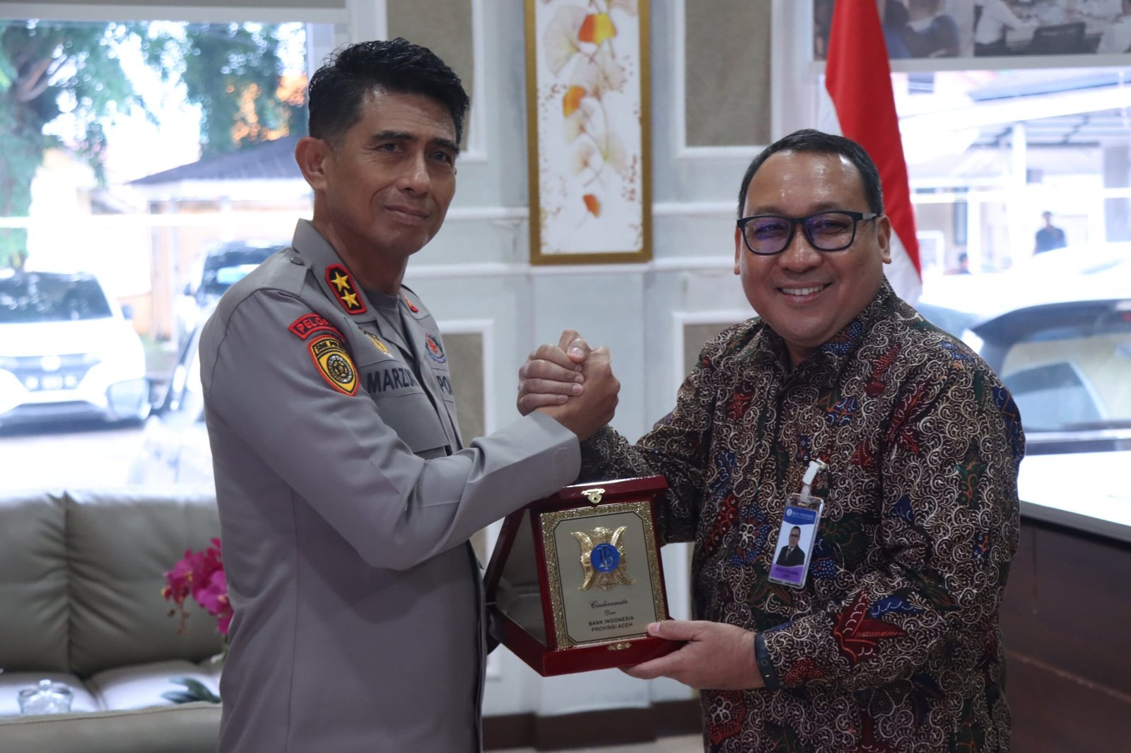 Audiensi diakhiri dengan pertukaran cendera mata antara Kapolda Aceh dan Kepala Perwakilan BI sebagai simbol persahabatan dan komitmen bersama dalam menjaga kestabilan ekonomi dan keamanan daerah demi kesejahteraan masyarakat Aceh.