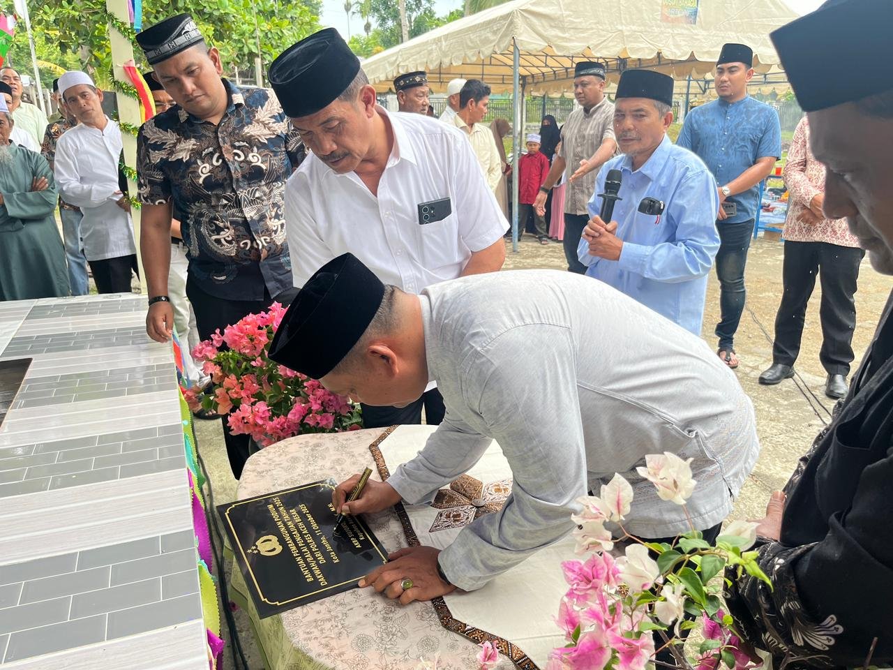 Peresmian balai pengajian tersebut ditandai dengan penandatanganan prasasti yang disaksikan oleh Wakil Bupati Aceh Besar Drs.Syukri A.jalil., Sekda Aceh Besar Bahrul Jamil., Ka Lapas Kelas IIB Kota Jantho.,Kadis Dukcapil, Para PJU Polres., para tokoh masyarakat, tokoh agama, Perangkat desa warga setempat serta tamu undangan.