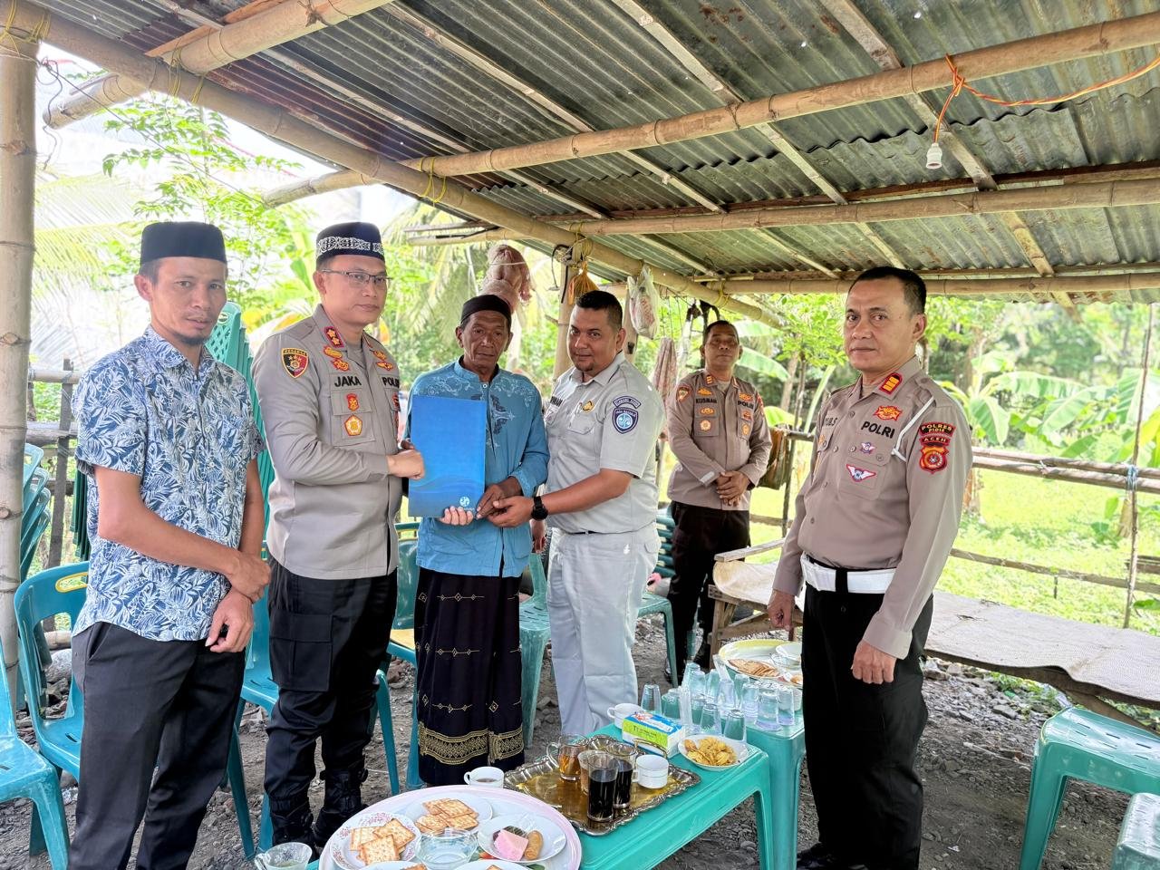 Sigli ( Inforakyataceh ) Kapolres Pidie AKBP Jaka Mulyana, SIK, MIK, bersama Kepala PT. Jasa Raharja Kabupaten Pidie melaksanakan kunjungan ke rumah duka korban kecelakaan lalu lintas di Gampong Garot Cut, Kecamatan Indrajaya, Kabupaten Pidie, pada Senin (13/10/2025).