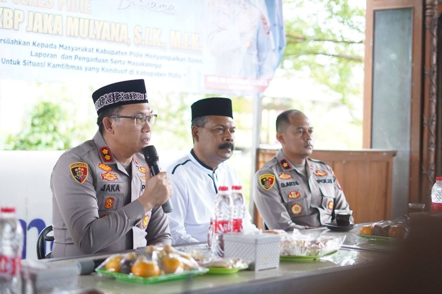 Sigli ( Inforakyataceh ) Jum’at 1-8-2025 Dalam rangka mempererat komunikasi dan menjaring aspirasi masyarakat, Kapolres Pidie AKBP Jaka Mulyana, SIK, MIK., menggelar kegiatan Jumat Curhat bersama warga dan tokoh masyarakat Kecamatan Pidie.