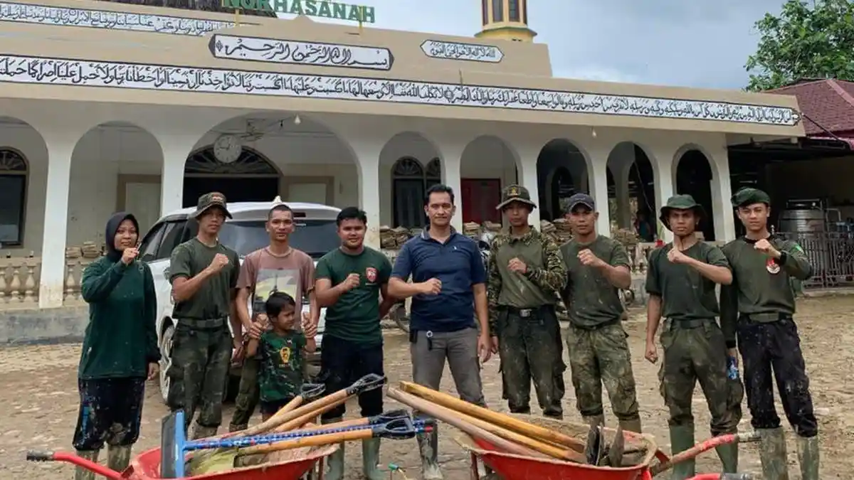 UIN AR-RANIRY (Inforakyataceh) Resimen Mahasiswa (Menwa) Batalyon 102 Rencong Sakti UIN Ar-Raniry melakukan aksi pembersihan dan rehabilitasi sejumlah masjid serta fasilitas pendidikan yang terdampak bencana di Kabupaten Aceh Tamiang.