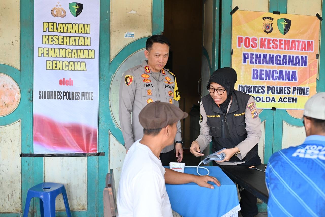 Kapolres Pidie AKBP Jaka Mulyana, SIK, MIK melalui Kasi Humas AKP Anwar, S.Ag menyampaikan bahwa bakti kesehatan ini merupakan wujud hadirnya Polri untuk memastikan masyarakat terdampak banjir tetap mendapatkan layanan kesehatan yang memadai.