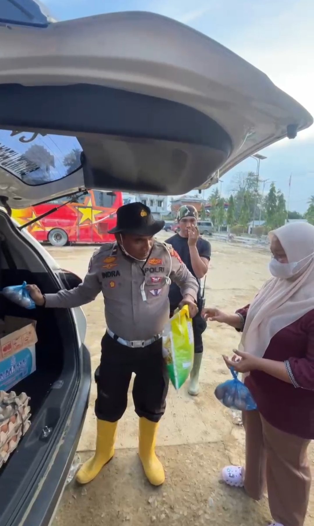 Aceh Tamiang ( Inforakyataceh ) Kepolisian Daerah Aceh melalui Polres Aceh Tamiang kembali menunjukkan kepeduliannya terhadap warga yang terdampak bencana banjir. Personel Satuan Lalu Lintas (Satlantas) Polres Aceh Tamiang turun langsung ke sejumlah titik terdampak di Kecamatan Kota Kuala Simpang, khususnya Desa Sriwijaya dan beberapa desa lainnya, untuk menyalurkan bantuan paket sembako pada Minggu, 7 Desember 2025.
