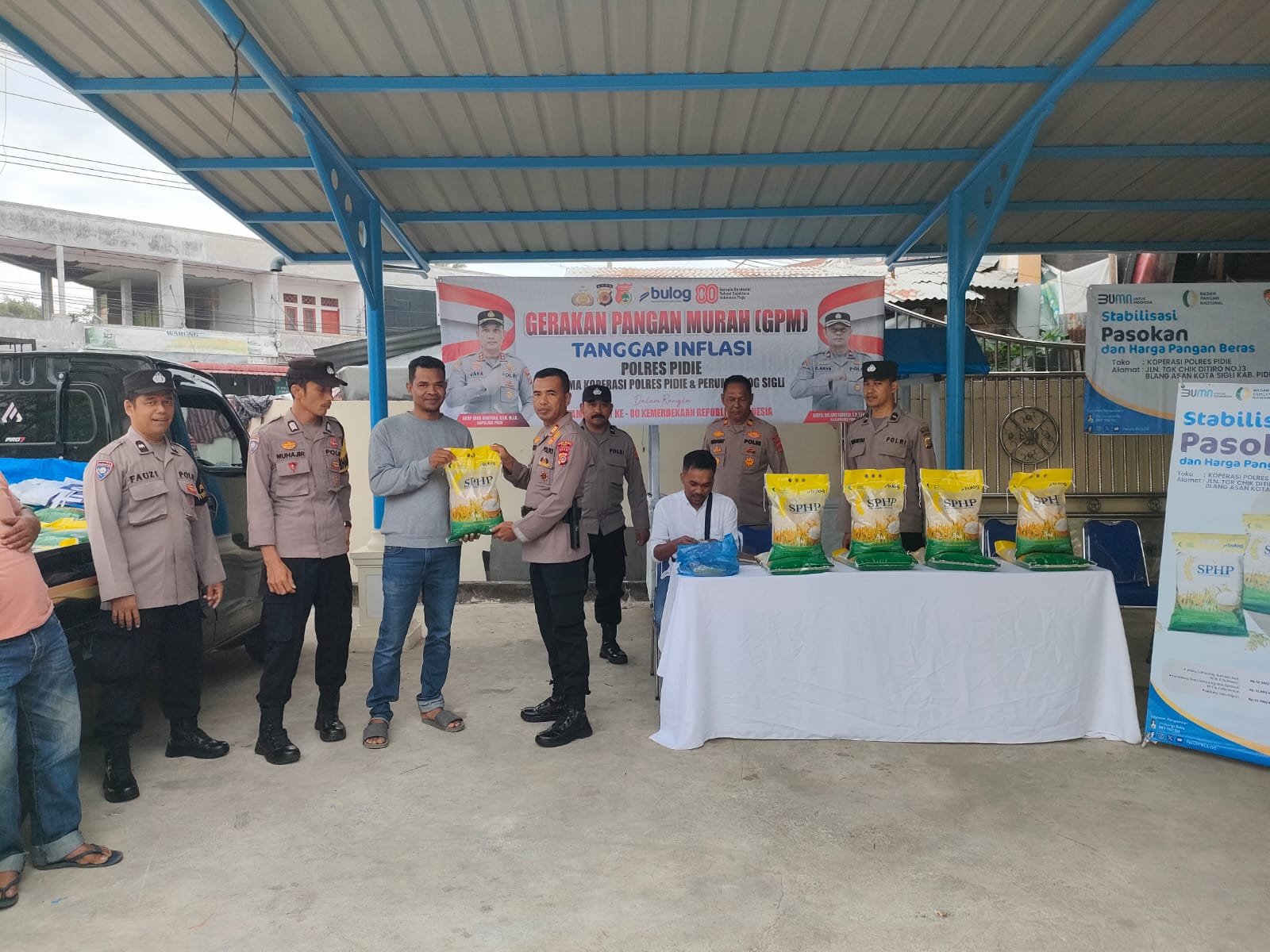 Kapolres Pidie AKBP Jaka Mulyana, SIK, MIK melalui Kapolsek Glumpang Tiga Iptu M. Hidayat menjelaskan bahwa dalam kegiatan ini, Polres Pidie menyediakan 2.000 kilogram beras SPHP dengan harga subsidi per 5 kilogram. Harga ini jauh lebih rendah dibandingkan harga pasar, sehingga diharapkan mampu membantu meringankan beban masyarakat.