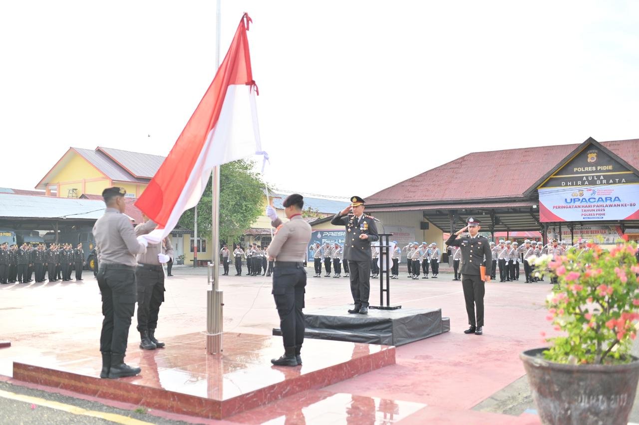 Sigli ( Inforakyataceh ) Dalam rangka memperingati Hari Pahlawan Ke-80 Tahun 2025, Polres Pidie menggelar upacara dengan penuh khidmat di Lapangan Apel Polres Pidie, Senin, 10 November 2025.
