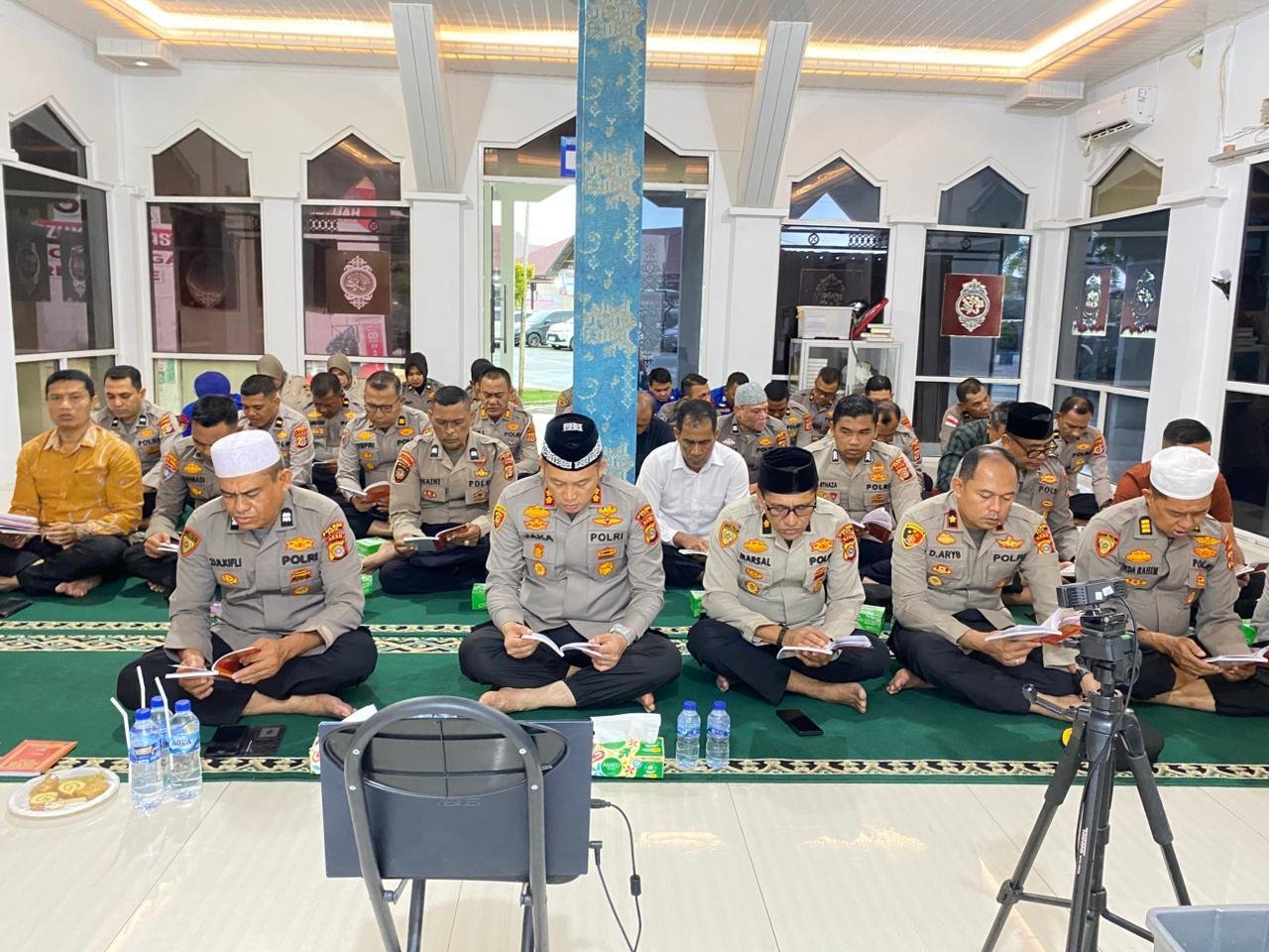 Kegiatan yang berlangsung di Musolla Ar-Rahim Polres Pidie dan diikuti langsung oleh Kapolres Pidie AKBP Jaka Mulyana, SIK, MIK, didampingi Wakapolres, para Pejabat Utama (PJU), perwira, brigadir, serta ASN Polres Pidie.