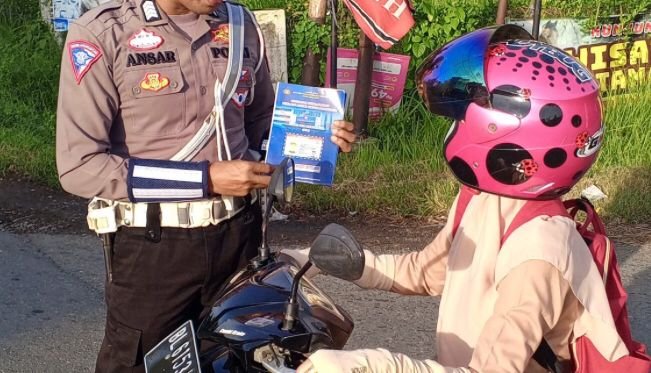 Aceh Besar ( Inforakyataceh) Salasa 15-4-2025 Personel Satlantas Polres Aceh Besar Polda Aceh melaksanakan Sosialisasi Himbauan Kamseltibcarlantas serta membagikan Brosur himbauan kepada pengendara pengguna jalan di wilayah hukumnya,Selasa (15/04/2025).