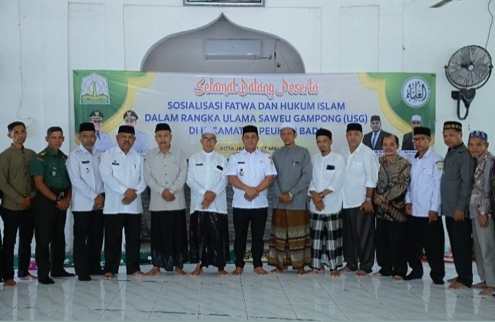 Kota Jantho ( Inforakyataceh ) Rabu 7-5-2025 Bupati Aceh Besar H Muharram Idris atau yang akrab disapa Syech Muharram membuka sosialisasi fatwa dan hukum Islam dalam rangka pelaksanaan program Ulama Saweu Gampong ( USG ) di Kecamatan Peukan Bada. Kegiatan tersebut berlangsung di Meunasah Gampong Lam Geu Eu, Kecamatan Peukan Bada, Kabupaten Aceh Besar.